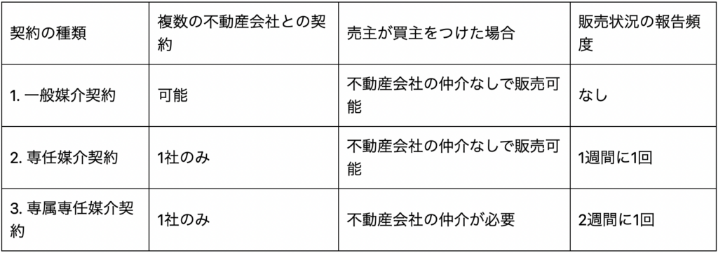 不動産の媒介契約とは、販売活動の方法や報酬金額などを取り決める契約をいいます。媒介契約には以下の3種類がありますが、専任媒介契約か専属専任媒介契約がおすすめです。